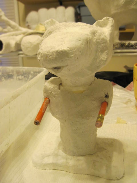 I wrapped the pencils/arms with plaster cloth...he is looking a little Godzilla-y to me right now.
