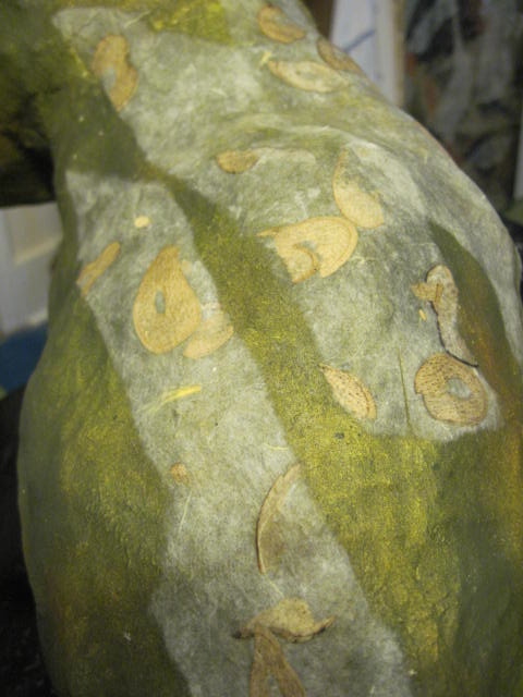 In a couple of places I had to rip the paper as I laid it into the glop so that it would conform to the surface imperfections. Like yesterday, as it was drying I smoothed out as many air pockets as I could.