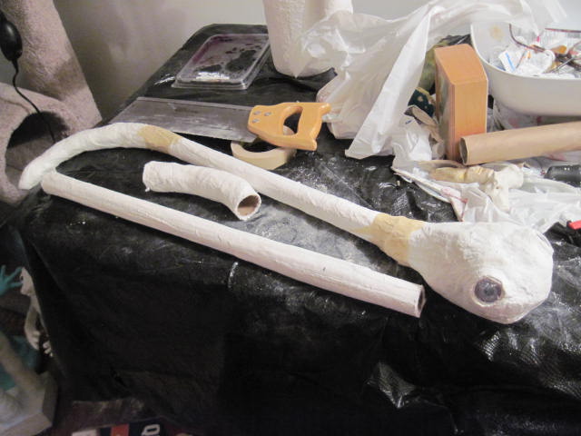I cut his head off, cut the bend of his tail off, then I needed to trim off another small section where his head attached to the body and also another small chunk of the tail curve. The result is that I have a shorter, cuter snake and two leftover sections that I can probably use with another snake later on.