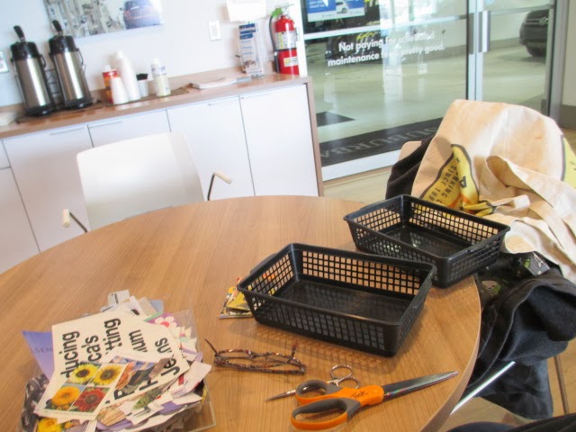 I finally made it into the dealership today to get the 10,000 mile/one-year maintenance thing...I don't even have 5,000 miles yet but the car has taken to pretty much yelling at me with dinging and flashing messages PLUS I was out of windshield washer fluid so I finally dragged myself into the dealership. I worked on cutting images while I was waiting.
